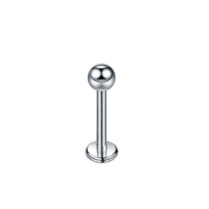 Piercing de acero de titanio, plano de atrás con bolita rellena en el frente. Bolita de 3mm, largo de pin de 6mm. y ancho del pin 1.2 mm. Se desenrosca por adelante.