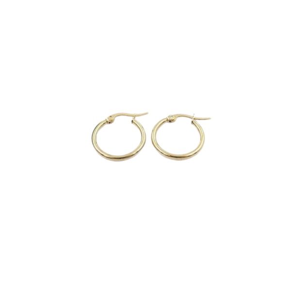 Disponibilidad:3 disponiblesAretes dorados de acero inxodiable en forma de argollas de 20mm