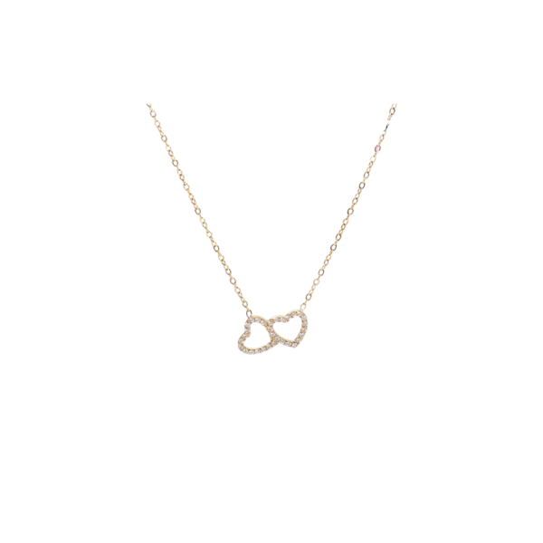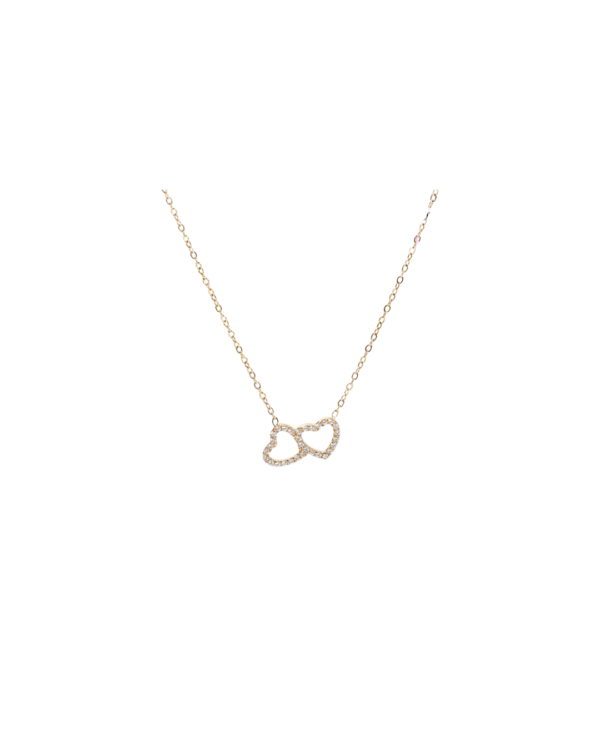 Disponibilidad:2 disponiblesCollar dorado de acero inoxidable con dije de dos corazones vacíos con orilla de circonias
