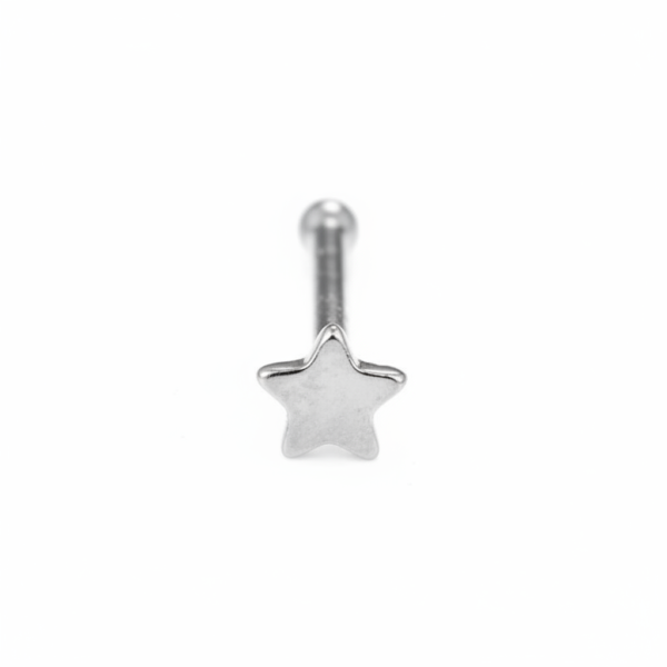Disponibilidad:3 disponiblesPiercing plateado para nariz en forma de estrella con cierre de bola