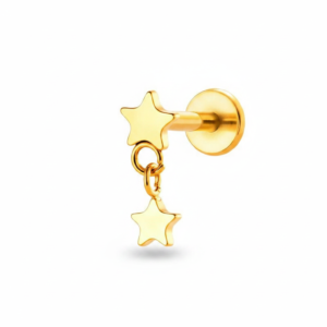 Piercing dorado de titanio con una estrella fija y una estrella colgante
