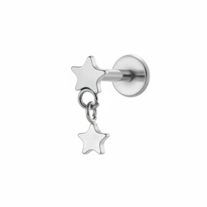 Piercing plateado de titanio con una estrella estática y una estrella colgante