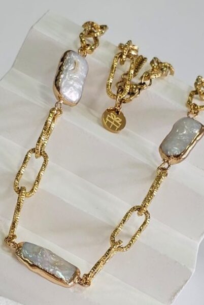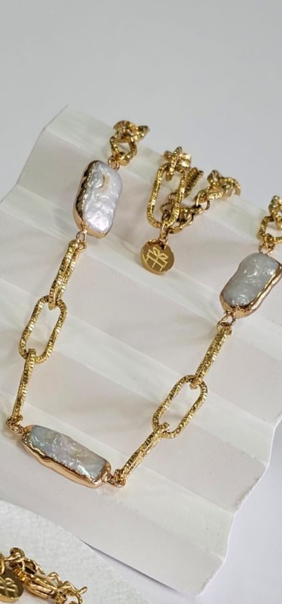 Etiquetas: baño de oro, cadena, perla