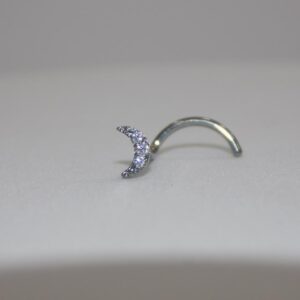 Piercing para nariz plateado de titanio con luna de circonias y pin curvo