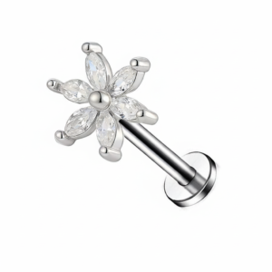 piercing plateado de titanio para aretes con circonia en forma de flor