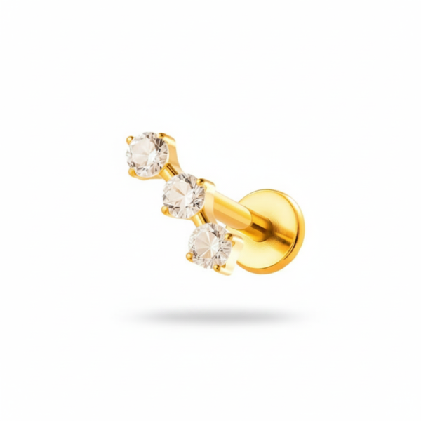 Piercing color dorado con dije de platito con circonias.